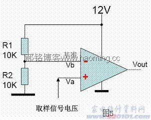 在图5中;把输入端Vb作为基准电压端;接由R1、R2组成的分压电路,图中的基准电压为6V;Va为被比较电压输入端,接电压或电流取样电路送来的取样信号。当取样电压小于6V时;比较器Vout输出端为低电平输出。当取样电压大于6V时;比较器Vout输出端为高电平输出。这个Vout的输出就可以去控制相应的受控电路。在具体的应用中也可以把把输入端Va作为基准电压端;Vbz作为被比较电压输入端。改变R1、R2的比值;可以改变基准电压的大小;也就是改变了比较器的门限电压以适合不同的控制场合。