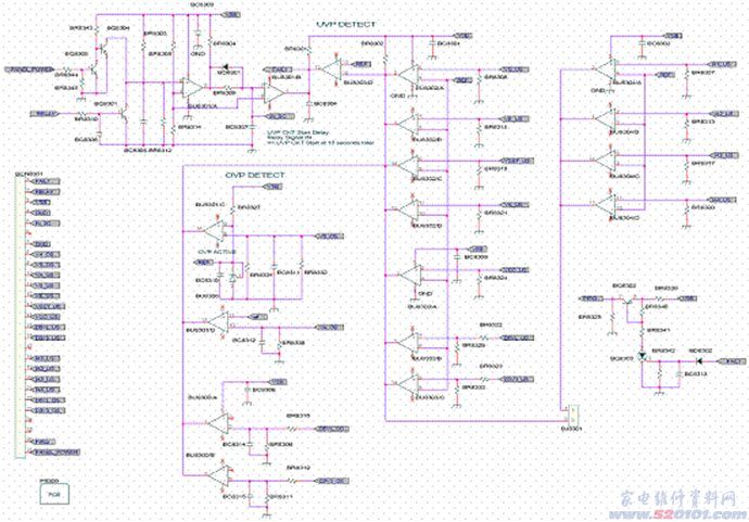 由此可见,采用了电压比较器电路来作为保护电路的检测比较电路后,其控制精度大大的提高,由于是集成电路,其可靠性、一致性也极大的改善,目前被广泛的应用在要求较高的等离子电视机的保护电路上(较高性能的液晶电视也采用了比较器作为保护检测原件)。