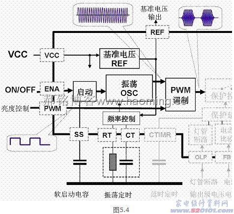 ②接受CPU送来的亮度控制信号(PWM),对高频振荡进行PWM调制。