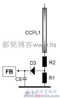 这是一只CCFL灯管的电压取样电路。对于多灯管电路,只要把整流输出连接在一起再送入振荡控制电路的OVP输入端就可以了。