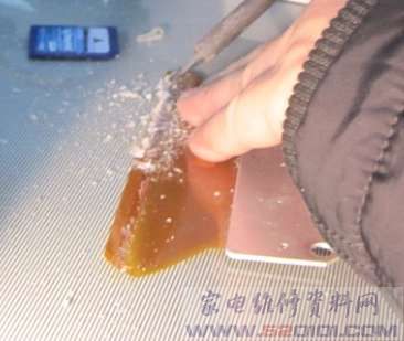 先用热风枪加热,用小刀割除起始部位的胶,加热与屏的接口部位,达到一定的温度后,用手轻轻一撕就取下来了。