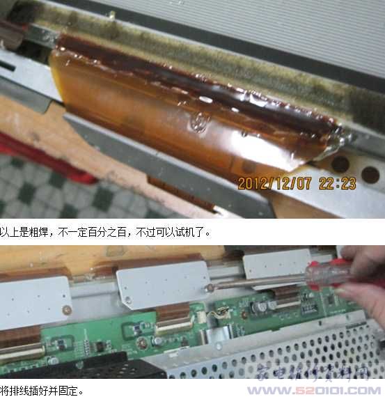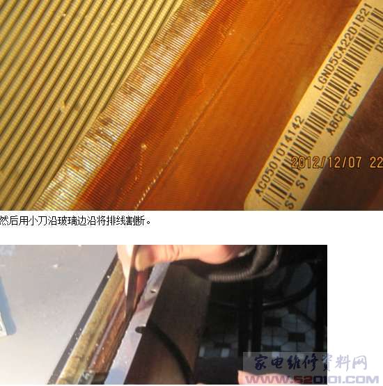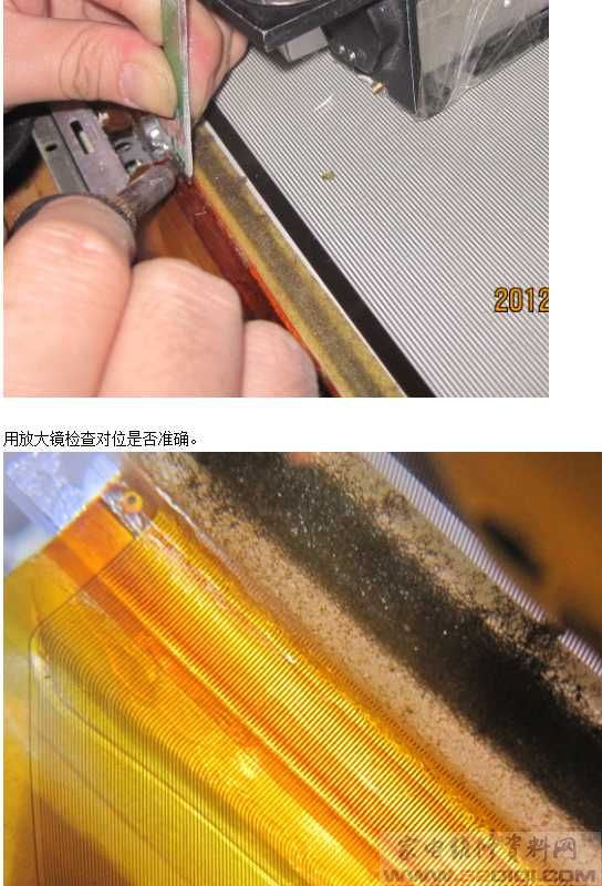 LG,松下的屏都可以这样修,三星的可以从排线中间部位割断焊接,这样如不成功还可以再来。