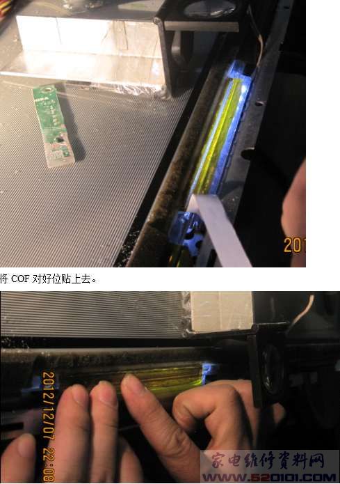 在排线下面插入LED灯条,并用放大镜看有没有焊短路的。