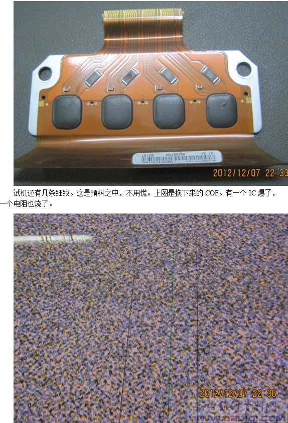 以LG42V6的屏为例说明,故障图片如下