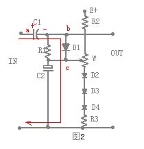 有一个幅度较大的同步头信号到来,那么D1将又被正偏而导通,b点电位还是等于C点电位,因此视频信号的同步头将被钳定在C点的电位上,如图3所示。调整W可改变C点的电位。 为了保证C1在放电期间的时间常数足够大,所以OUT接入的阻抗必须要足够大,可使用一级射随器或使用场效应管。电路中的D2--D4起着稳定C点电位的作用,当温度升高时b点电位将升高,因二极管有负温度特性,当温度升高时其压降也降低,从而稳定了C点电位。 |