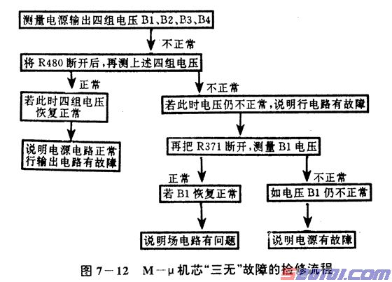 电路不工作引起的.具体检修流程见图 7-12 所示。