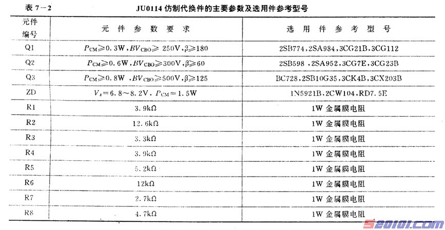 7-15 所示。代换元件的参数要求及选用件参考型号见表 7-2 所列。