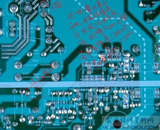 对这部分可采用断保护的方法,后述。看VS,VA电压是否正常,VA无输出一般为IC901坏。VS无输出,按常规检查即可解决。