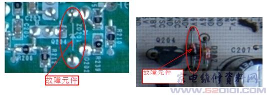 实际维修中,6。5V输出的滤波电容C210,C211坏得最多,很多时候更换就好,但在有的品牌中,这两个电容坏会使用户存储器数据出错而不能开机,此时可更换空白的用户存储器解决。有时甚至会损坏FLASH存储器,这时就要升级FLASH。