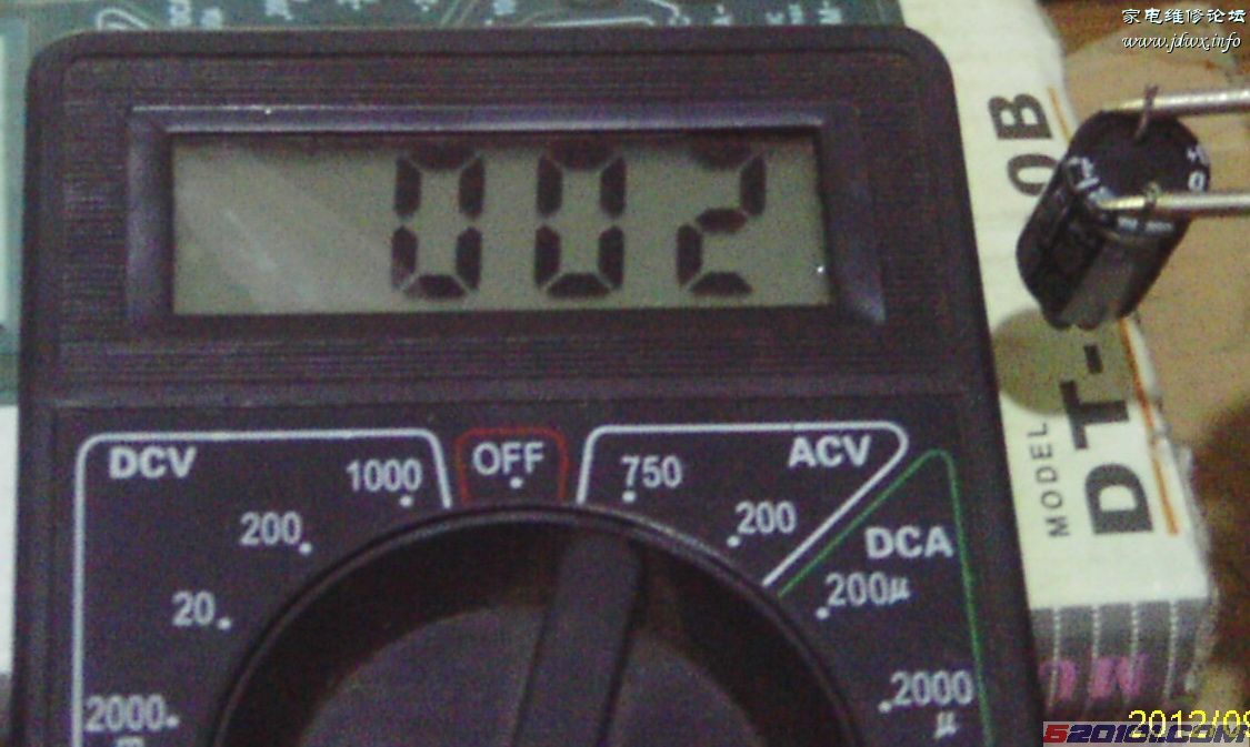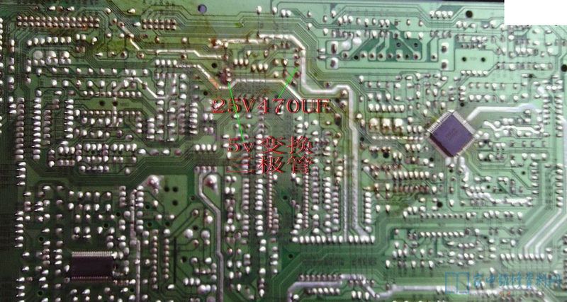 用D2012换上,但脚位不对,用线接入,没5V输出,查到12V输入端25V470uf短路,