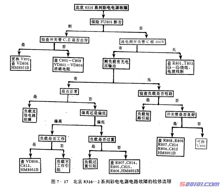以上具体检修时, 可按图 7—17 所示的流程进行行。