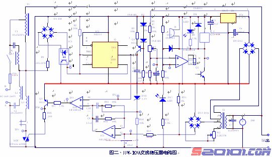 双向可控硅是这种稳压器中的调节元件,从电路图中不难看出,双向可控硅和电抗器