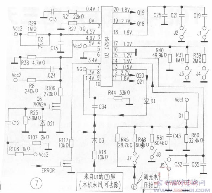 (1)图7中OZ964的②脚(过压保护脚)直接接地,不起保护作用(未用此脚功能)。