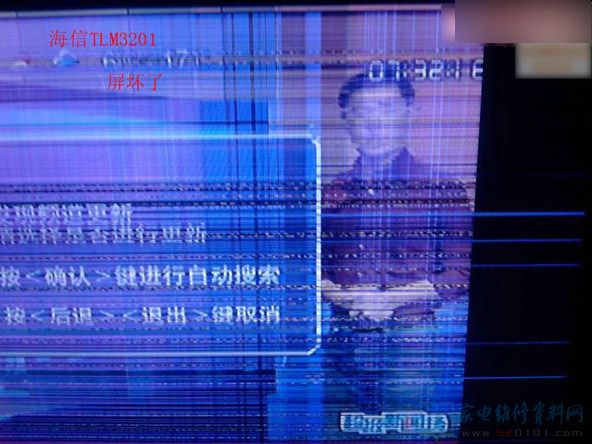 图19、海信TLM3201有不规则竖线和横线干扰(故障原因:屏坏了)