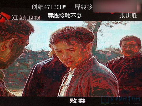 图9、创维47L20HW液晶电视图像异常 (故障原因:屏线接触不良)