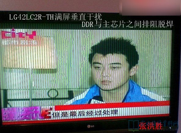 图10、LG 42LC2R-TH满屏垂直干扰(故障原因:DDR与主芯片之间排阻脱焊)
