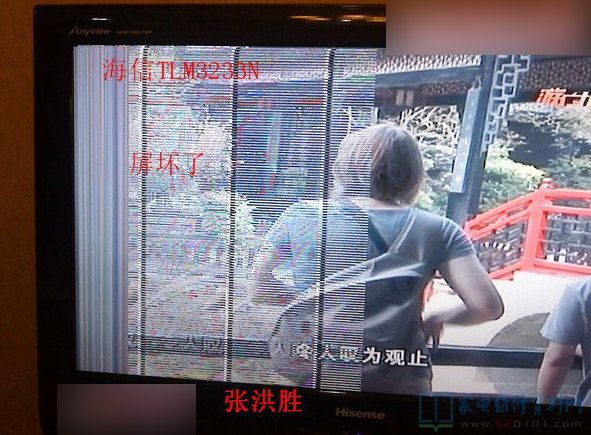 图1、海信TLM3201液晶电视机满屏干扰线 (液晶屏损坏)