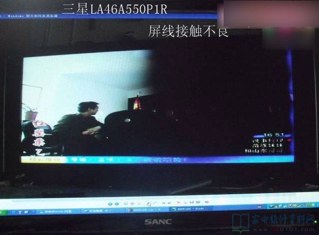 图23、三星LA46A550P1R液晶屏 图像异常(故障原因:屏线接触不良)