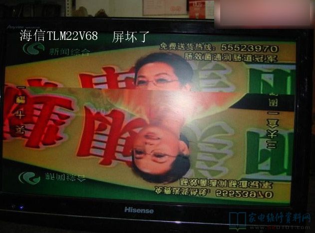图6、海信TLM22V68液晶电视图象出现倒影 (故障原因:液晶屏损坏)
