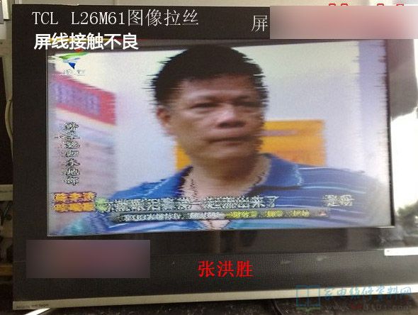 图13、TCL L26M61图像拉丝(故障原因:屏线接触不良)