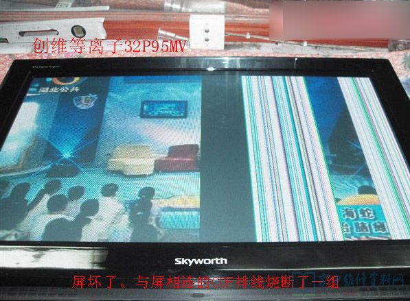 图22、创维等离子电视32P95MB图像右侧有竖线(故障原因:屏坏了,与屏相连的COF排线烧断了一组)