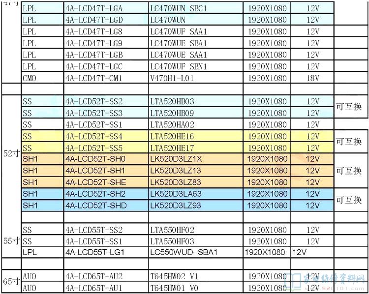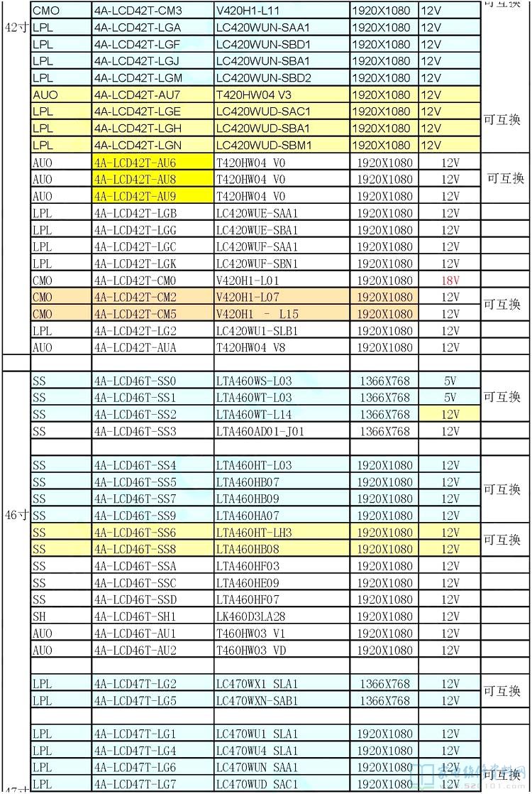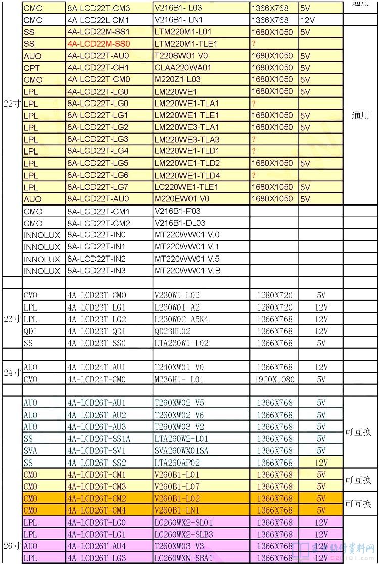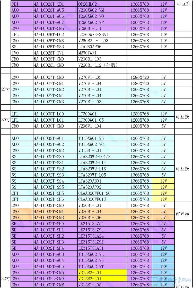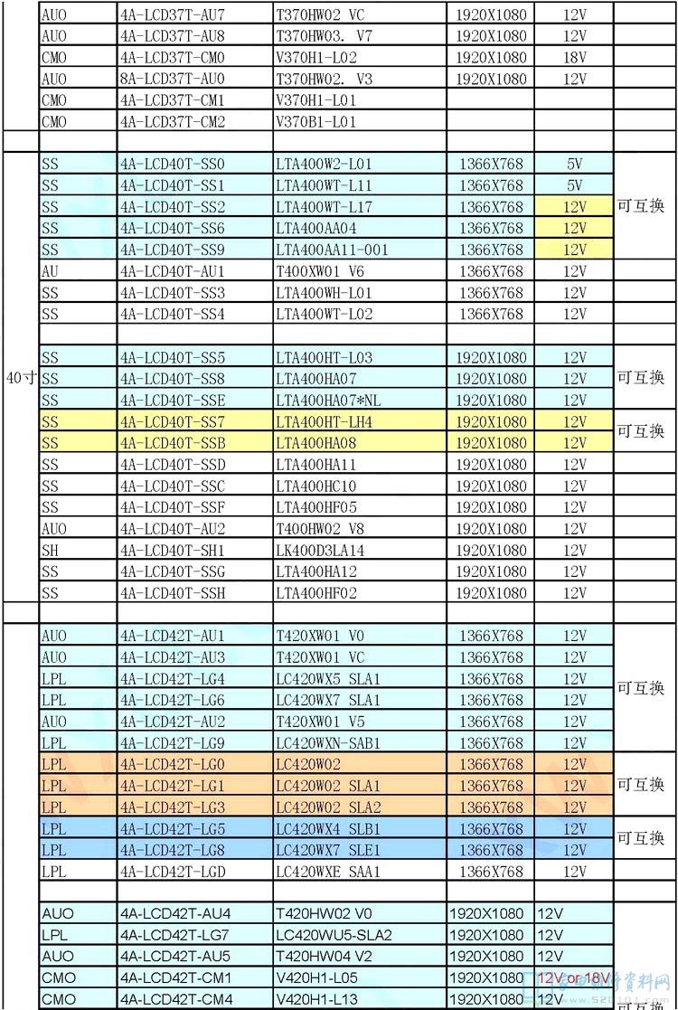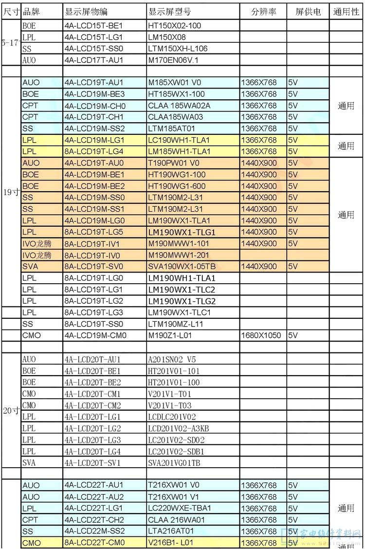 液晶屏代换查询一览表 2017-08-28 20:05:57 阅读 600 次 评论 0 条 摘要: 本文整理了目前市面上常用各规格液晶屏的代换,涵盖5 - 65寸的的显示屏,有奇美屏、友达屏等生产厂家产品。液晶屏代换一览表如图所示。 本文整理了目前市面上常用各规格液晶屏的代换,涵盖5 - 65寸的的显示屏,有奇美屏、友达屏等生产厂家产品。液晶屏代换一览表如图所示。 版权声明:本文为转载文章,版权归原作者所有,欢迎分享本文,转载请保留出处! 点赞 分享: PREVIOUS:52寸LG屏驱动板维修资料(LC520WU1-SLB1-G31) NEXT:LED液晶屏简介及背光灯条维修入门 文章导航