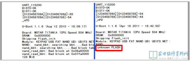 3. 采用MT5501芯片的机芯很多只打印个Boot的问题,这种故障NAND/主芯片/DDR都有遇到,由易到难代换。