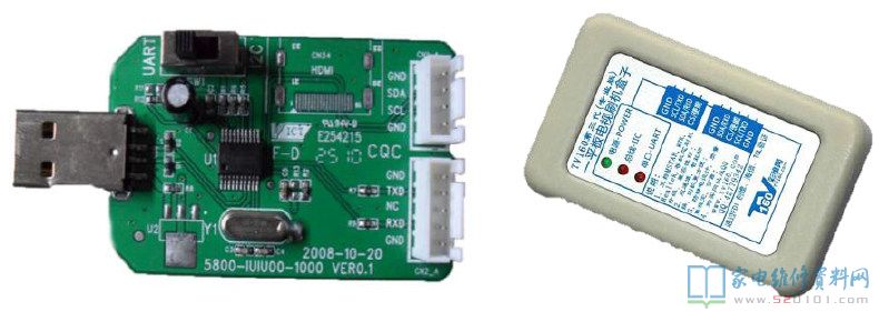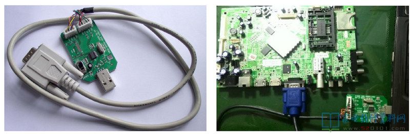 升级小板实际上是一块USB转串口的转接板。通过它对主板的Flash进行烧写程序,就是利用它来建立电脑USB口和主板主芯片串口之间地通讯。当前我们采用的方案为CH341A升级小板和FT2232刷机盒子。