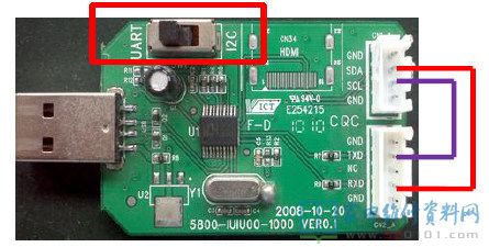 部分8M系列的主板需要把 RXD-SDA,TXD-SCL相连(如右图)才能显示出打印信息,通过将开关拨动到IIC即可。