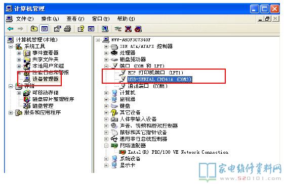 串口驱动程序安装成功后,找到电脑的设备管理器---端口---USB-SERIAL CH341A(COM3)