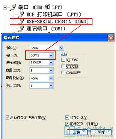 串口工具设置:首先要保证电脑上安装了USB串口驱动程序CH341SER.EXE