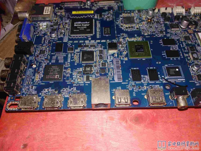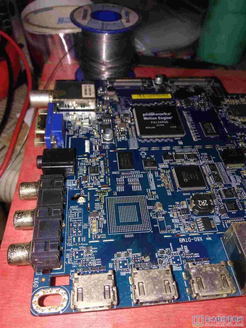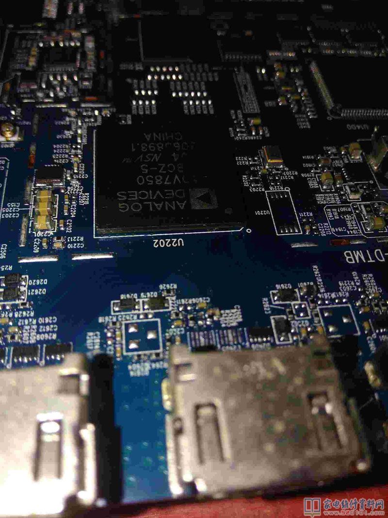 自己家里一台乐视电视机,在一个雷雨交加的天气里,遭遇一声炸雷,乐视X60S就无法看视频,切换到用机顶盒播放HDMI视频源一直在打圈搜索中,但是本机自带网络电视软件可正常收看。开机检查,测量机顶盒连接HDMI接口发现有2个对地电阻已为1.5K左右,测量没接的2个HDMI端口对地均为开路状态。拆下2只芝麻大的10脚贴片,内部为保护HDMI接口具体型号看不清(也懒的看),测量对地电阻不变,BGA封装的ADV7850KBCZ-5视频识别处理可以确定已坏,赶紧TAOBAO上搜索,原装主板800多,代用阉割板无自带网络的500多,但是如果更换ADV7850KBCZ-5芯片只要28元+5块运费,看来不得不用我的热风枪来解决这问题了。隔2天零件收到,拿出我拆LED的PTC加热板,找块木板加4个钉子组成下加热,上面热风枪调到420,拆下焊上试机,机器完美修复(我更换的时候不用植株,买来自带的,就是是高温锡不易融。普通内存类一般我都不植株的,线路板和集成块拖好让它略鼓,不要用吸锡带拖太干净不行,用刀头带大颗锡在上面扫一遍,放大镜看都有点鼓就成,直接就吹上去也没发现问题)。
