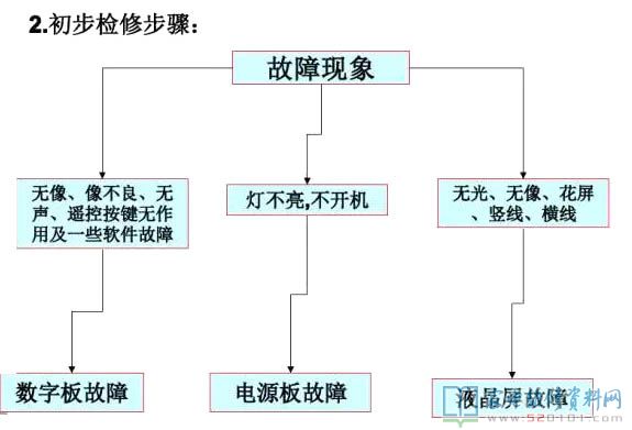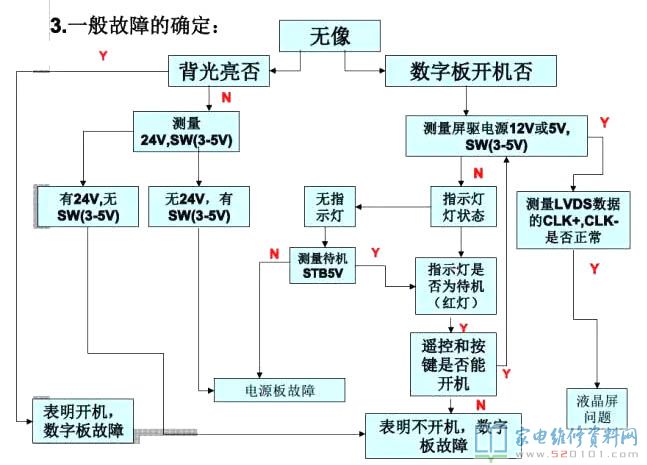 有条件的情况下,可以代换电源板,数字板,高频板,背光板,屏,LVDS数据线,软件等,这种方法维修快。