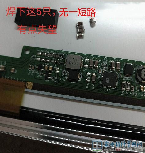 索爱40E6液晶电视灰屏故障维修 2019-11-15 19:53:32 阅读 444 次 评论 0 条 摘要: 一客户送修的索爱杂牌液晶40E6,通电试机灰屏,讲好维修费送走客人,首先拆机,测上屏电压和双绞线电压正常,逻辑板在边板,要折下外铁板才能看到边板,经检查是VAA短路,短路电阻0.81Ω(屏线插边板侧),漏 一客户送修的索爱杂牌液晶40E6,通电试机灰屏,讲好维修费送走客人,首先拆机,测上屏电压和双绞线电压正常,逻辑板在边板,要折下外铁板才能看到边板,经检查是VAA短路,短路电阻0.81Ω(屏线插边板侧),漏拍了修好影像图片。维修过程和结果请看图片说明。 版权声明:本文为转载文章,版权归原作者所有,欢迎分享本文,转载请保留出处! 点赞 分享: PREVIOUS:夏普LCD-32D30-WH液晶电视换灯管步骤 NEXT:创维37E82RD液晶电视出现横条跳动故障维修 文章导航