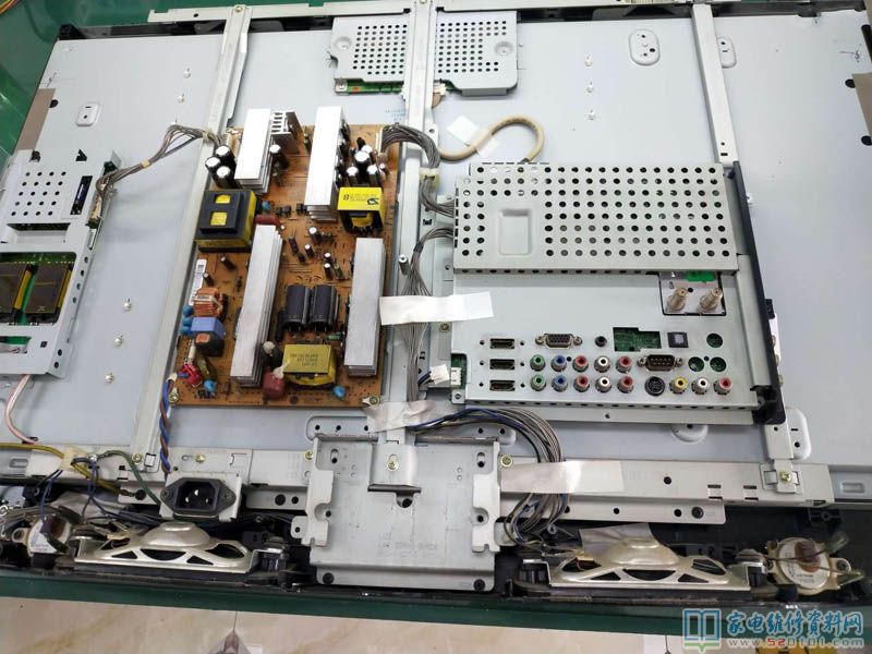 本人推荐的这款V56液晶通用主板性能稳定,画质完美,改装方便,成为了当今维修人员不可缺少的配件之一,但总有一些新手同行们在改装过程中会遇到很多麻烦,接线改线这些都是比较基础的电路知识,这里就不多说了,下面主要针对新主板如何固定,还有改装完是否美观等问题做一个实例介绍,这是本人今天上午接修的一台32寸液晶电视,是一位鲜族顾客从韩国本土带回来的LG电视,据说只能在韩国地区使用,在国内使用由于制式不同会出现没有彩色的现象,打开初步试了试,确实像顾客所说,而且菜单里全是韩文的,告知顾客换通用主板,和客户谈好价格,顾客爽快答应,于是改装工作开始进行,具体请看下图。