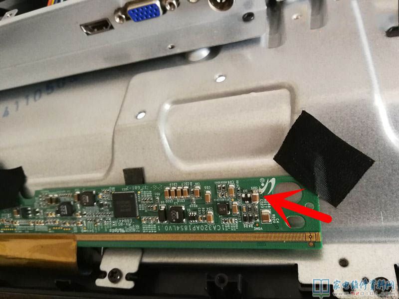 接修一台先科杂牌液晶电视开机暗蓝屏无字符,该机器用的三合一V59万能板,逻辑板和屏板在一起,测屏板上已有12V供电。用TV160主板测试工具测试板子图像正常,故障部位锁定在屏板或屏问题。测屏板上除12V供电外其它稳压基本无电压,后查板上电容对地阻值发现CD23对地短路,拆下贴片电容测量板已不再短路,测电容已经击穿。
