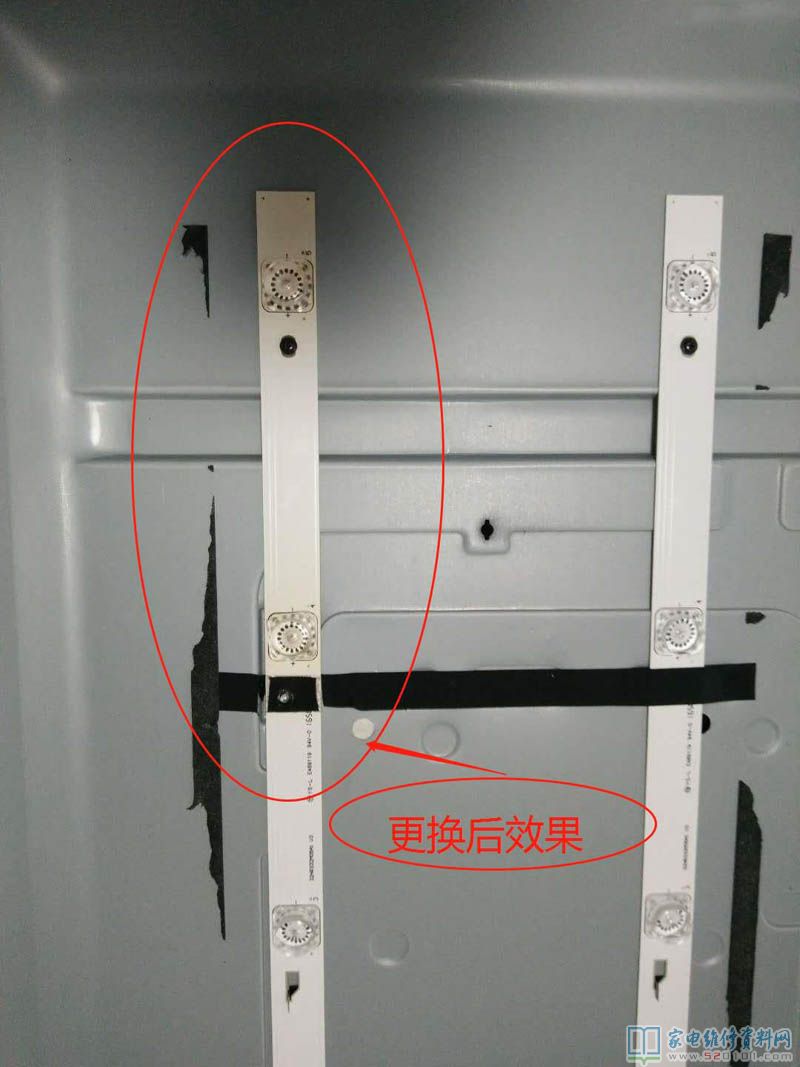 具体过程是把灯条放在煤气炉上加热,到适合温度后便可以拆下散光罩,然后拆下灯珠,把灯珠用同样方法安装到待装灯条上,检测发光正常,便可以组装屏幕了,必须小心翼翼组装,免得损坏屏幕液晶屏,安装前后效果如下图所示。