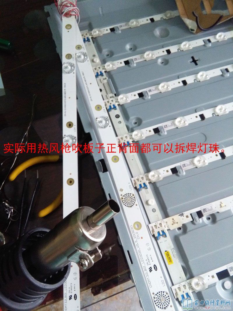 实际用热风枪吹板子从正面和背面都可以拆焊灯珠