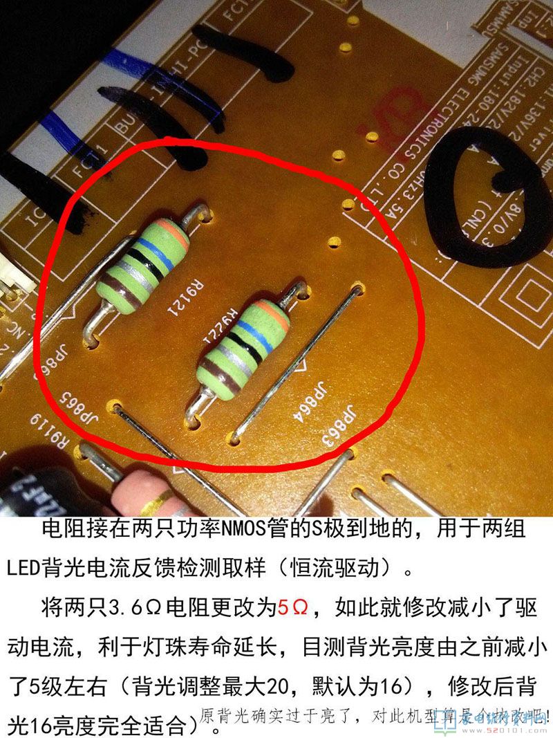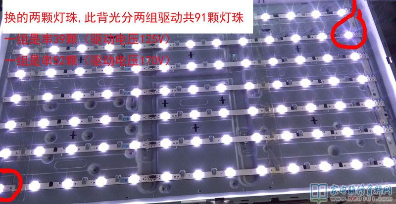 换的两颗灯珠,此背光分两组驱动共91颗灯珠。