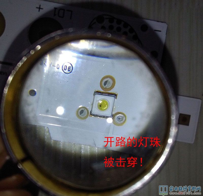 换上的一颗灯珠(其他灯条上拆的,亮度、色差不大,信越胶用来固定灯帽,外边涂一点AB胶)
