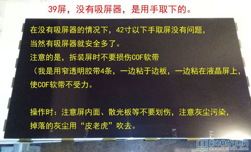 这个39寸液晶屏,没有吸屏器,是用手取下的。