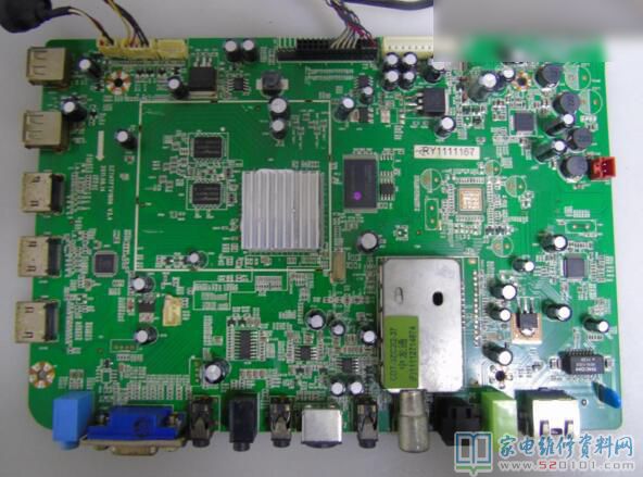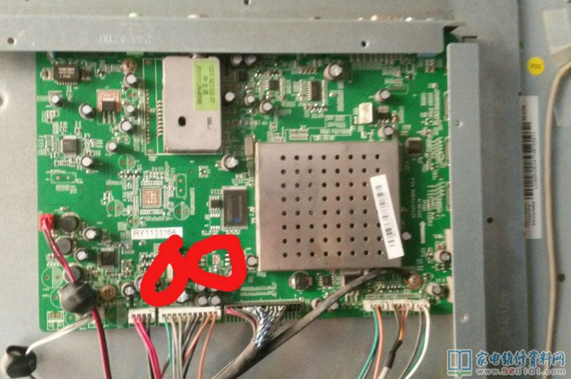 本通病故障涉及清华同方LE-32TM2000、清华同方LE-42TM2000、清华同方LE-32TM1800、清华同方LE-42TM1800等系列液晶电视,具体故障表现为通电后红灯亮不开机,而且还会不定时开关机。只要按照下图中的红圈标注位置,测量主板红圈中两个三端稳压器即可判断,大的元器件正常输出3.3V,小的元器件正常输出1.2V。