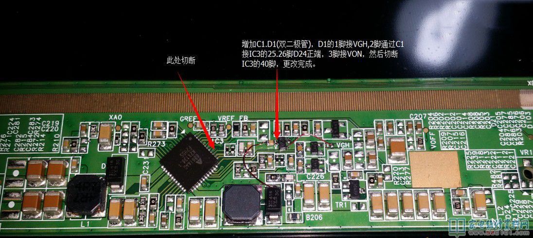 京东方HV320WXC-201液晶屏暗影故障的维修方法 2020-02-16 03:36:33 阅读 512 次 评论 0 条 摘要: 本人根据日常维修碰到的京东方屏暗影,总结出此款京东方HV320WXC-201暗影故障的维修方法,这个屏VON飞线不用说了,有经验的师傅都懂,网上关于此飞线资料也有,但是暗影处理却不多,我在百度上找了一个 本人根据日常维修碰到的京东方屏暗影,总结出此款京东方HV320WXC-201暗影故障的维修方法,这个屏VON飞线不用说了,有经验的师傅都懂,网上关于此飞线资料也有,但是暗影处理却不多,我在百度上找了一个方法,解决局部发暗问题,发上来给大家可以参考,具体看下图所示。 版权声明:本文为转载文章,版权归原作者所有,欢迎分享本文,转载请保留出处! 点赞 分享: PREVIOUS:长虹LT42710FHD液晶电视开机后无视频闪灰屏 NEXT:康佳LED42R6680AU开机系统无反应或字符无反应解决办法 文章导航