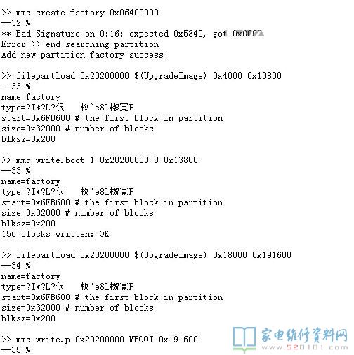 通过上面这段打印信息,可以看出,串口已经被打开,由于内核被擦掉,开机自动检测升级文件,这时候我们只要插入含厂家升级软件的U盘,在控制台下输入cu或重启就会开始升级。升级过程如下: