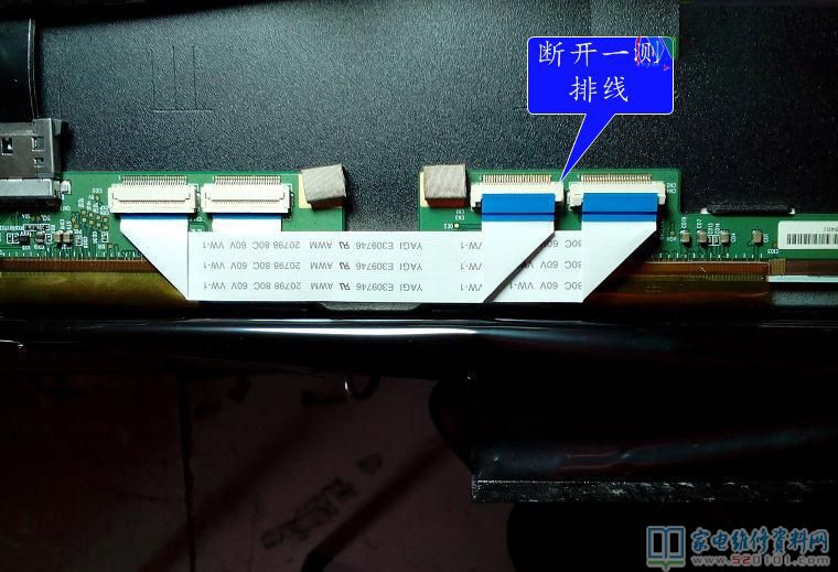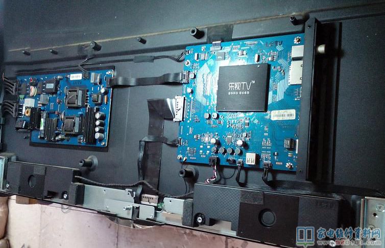 接修一台乐视TV Letv S40Air液晶电视,无图像暗蓝屏,这种故障基本都在屏边板上,拆掉屏边板上的压边条(螺丝有点多,需耐心拆解),露出边板,测上屏供电保险两端都有12v,VGL有-7V,VGH和VAA电压都为零,测VAA端对地电阻只有3欧左右,说明VAA端有短路的地方,为速战速决,百度一下,看有没有良方,一搜果然有一例:乐视Letv S40 Air液晶电视灰屏故障维修,是边板左侧有电容短路了,效仿把俩边板之间的排线断开,测VAA对地还是短路。看来本电视的故障和蜜蜂的不一样。