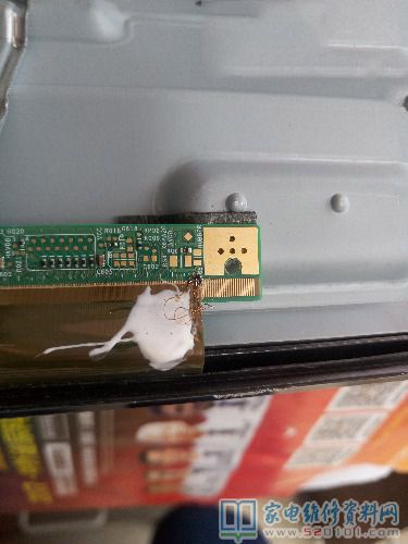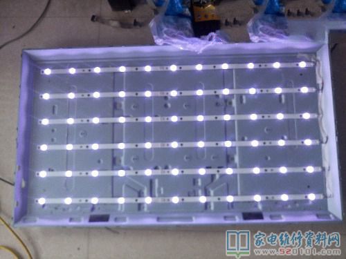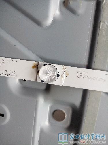 接修一台AOC 50寸液晶电视,故障表现是开机黑屏,指示灯变动正常,说明开机了,拆机测量背光电压,从94v变4 50v跳动,要么是灯条要么是板子,这个板子是电源和恒流一体的,想着着么大的电视真不好开屏,看电压跳动想是有保护,心里希望是板子的问题,然后不管了直接先买了再说,3天后板子到了,装上心里一直想装上就好装上就好,可是错了,哎,只能开屏了,这么大的不好开又是只有我一个人,想了一下午最后觉定要胆大心细的开了,第二天吃完早饭就动手,我是直接电视铺在桌上打算屏不动,在屏中间垫了个小纸板,边上的螺丝全拆,边卡扣撬开,弄两下全开了,直接把背拿下,看来真的是要胆大心细啊,打开一测,3个灯珠坏了,拆下换上。