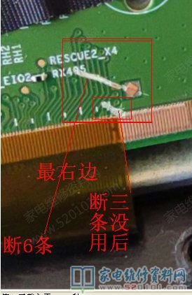 用刀割法修复金正4210液晶电视重影故障 2021-07-07 07:27:25 阅读 640 次 评论 0 条 摘要: 接修一台金正4210电视机,故障表现为图像竖向重影,这是一个39英寸的友达屏,如图所示,没有独立逻辑板,拆去一边屏线,右边出现断续竖线,最右边割一刀。右边Y供电就没了,剩左边工作,就不会冲突了。 接修一台金正4210电视机,故障表现为图像竖向重影,这是一个39英寸的友达屏,如图所示,没有独立逻辑板,拆去一边屏线,右边出现断续竖线,最右边割一刀。右边Y供电就没了,剩左边工作,就不会冲突了。 故障在左边就可不要割,用透明胶粘连接线金手指就可以了,更安全,出错也能还原。这种屏可没耳朵给你撕。 版权声明:本文为转载文章,版权归原作者所有,欢迎分享本文,转载请保留出处! 点赞 分享: PREVIOUS:LG 47LW6500-CA液晶电视不开机的故障维修 NEXT:海信HZ43E35A液晶电视不开机的故障维修 文章导航