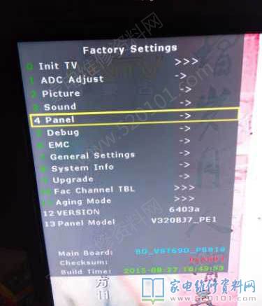 自己用的一台熊猫电视,故障表现为出现垂直黑线有一根筷条大少,故障快一年了,最近得到客户弃修电视一台LCD那种,屏幕完好,决定代换,接口一样,尺寸稍微不同,修改后完美解决,可惜老式屏幕都是正装,安装好后图像倒立,输入1147进入调试界面,反复盲调到如图所示总算调试完毕。