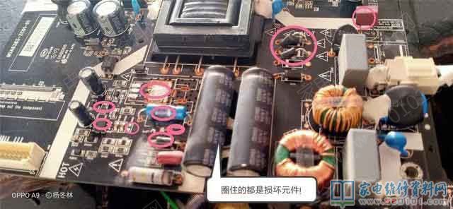 小的看不清,不知多大阻值,干脆不装算了。并装在一块的那个防尖峰的二极管也连带遭殃击穿了,电源管PQ207 :70R380P也短路了,用10N65贴片代替。再理电源管的G极线路,发现PR106 470也烧断了。这PR106与OB5269的5脚(PWM脉冲驱动输出)相连,说明电源芯片OB5269也损坏了!因手边没有OB5269换,只好用LD7575来代替。代换时,在芯片1脚处加装一只100K电阻与地相连就行。线路板上正好有个PR111空着的位置,填上就可以了。