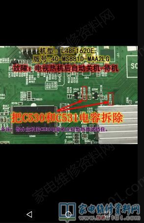 接修一台型号为AELODI牌50M4819E液晶电视,其主板采用的是TCL 40-MS881D-MAA2LG板方案,故障现象是不定时开关机,待1分钟左右绿色灯长亮,开机又能正常工作一段时间,又重复关机转待机壮态,拆机,在开机中测了POWER -ON,5V,灯条驱动4V,ADJ为工3.34V,VCC12V,随后关机后转待机,看听闻摸法用上,在用摸功大法后,发现带散热片的CPU比其它任何部分的温度稍高些,看来热机带来的热感冒,顺势找个12伏直流风扇给它降温后,不在关机后转待,断电风扇马上关机,难道要加风扇吗?不,但是要找到病根,才能解决问题,再用红外线测温仪对整个主板搜索中也未找到故障点,因为风扇一直在工作,故障就不出现。